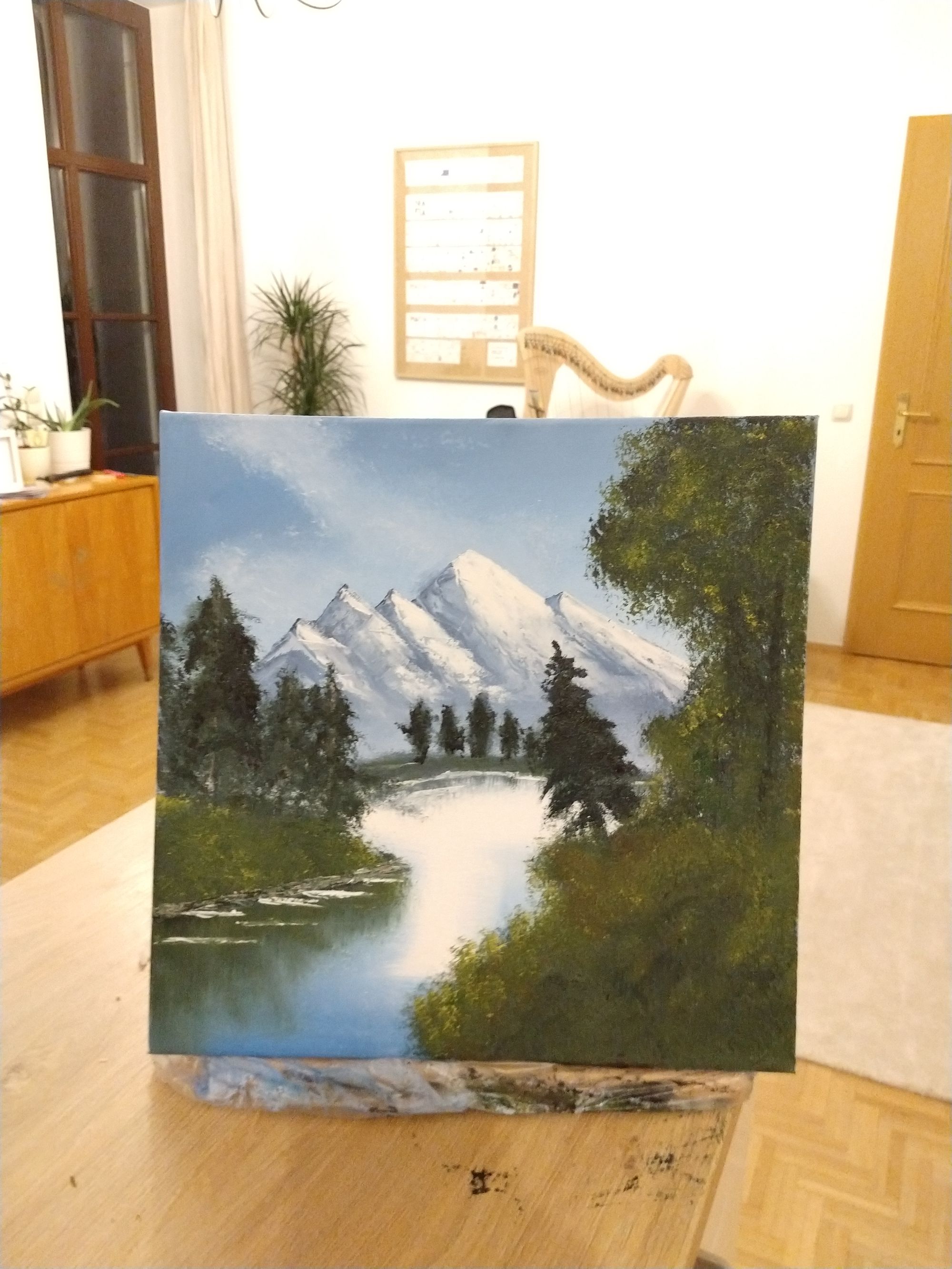 I always thought oil painting was very difficult. But I just came across a really charismatic painting teacher, Bob Ross, and got convinced to give it a try.